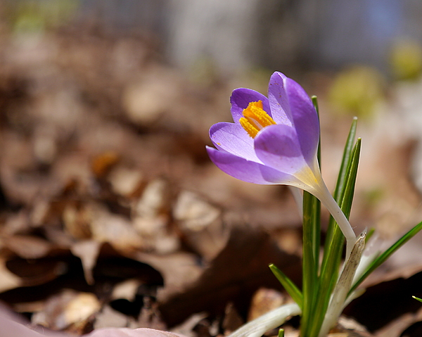 This beautiful crocus flower is straining to be seen through the old oak leaf litter.